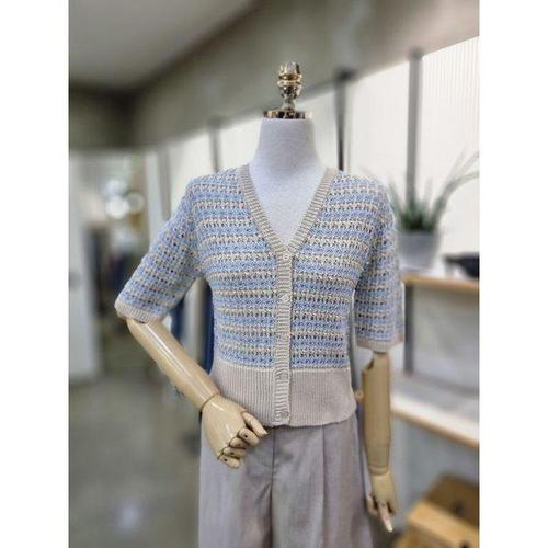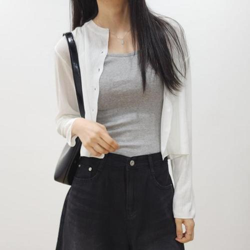 [헤이데이즈]1189 여름 골지 긴팔 라운드 니트 숏 크롭 가디건 / 살안타템 에어컨가디건