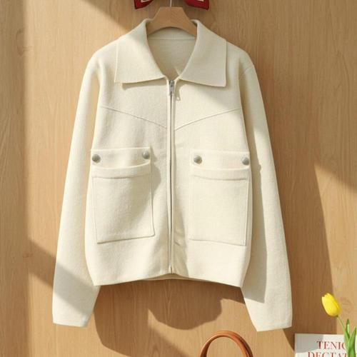 |CDJ6D66|여성 크롭 카라 포켓 니트 집업 가디건 쇼트