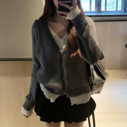 |CCJ6DD9|여성 브이넥 크롭 니트 가디건 레이어드 숏사이즈 프리