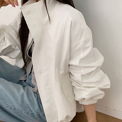 숏 야상 점퍼 스트링 윈드 브레이커 집업 여성 바람막이