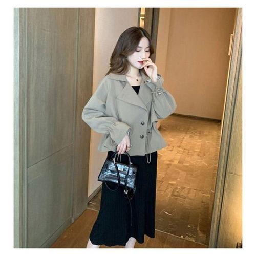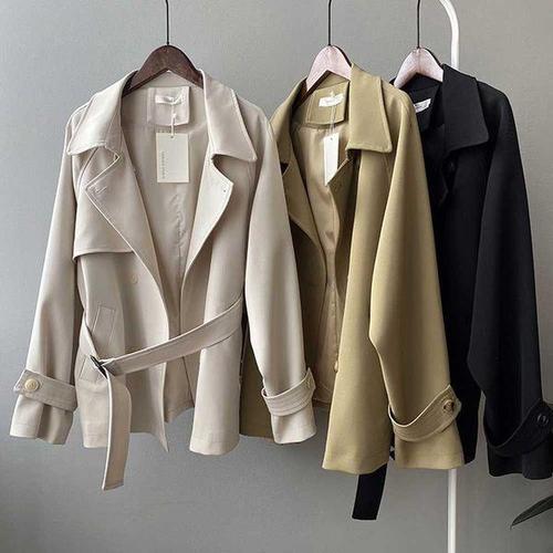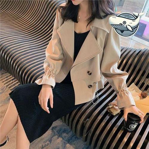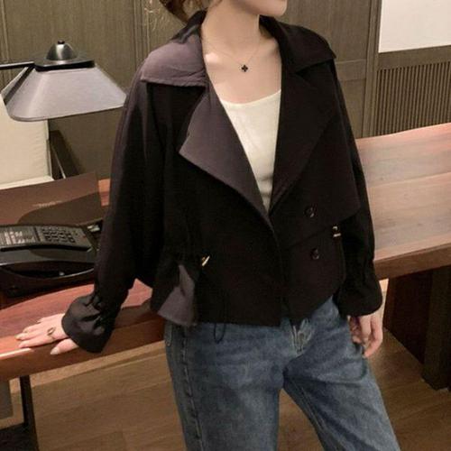 패션 라펠 숏 트렌치코트 여성 더블 브레스티드 포켓 재킷 여성 가을 겨울 신상 오피스룩 솔리드 아우터