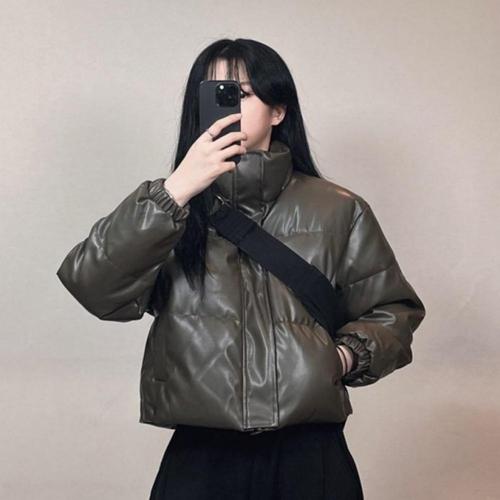 [오너클랜]인기상품 여자 카라 점퍼 스트릿 무광 레더 크롭 여성 숏패딩 [WFMDBTX_260327]