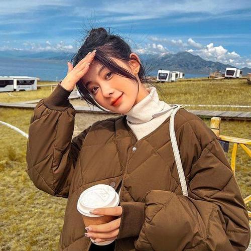 BIKASU 여성 캐주얼 노카라 경량 숏패딩 오리털 빅사이즈 패딩 겨울 점퍼 아우터