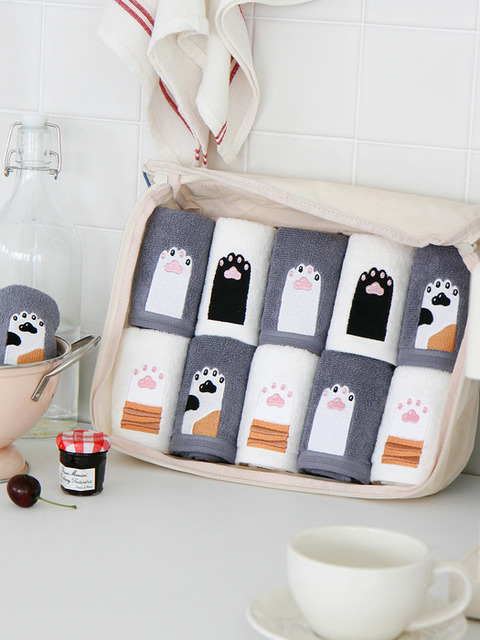 [송월타올] 냥냥펀치 고리수건 10매 + 에이와이오 트래블파우치M 세트