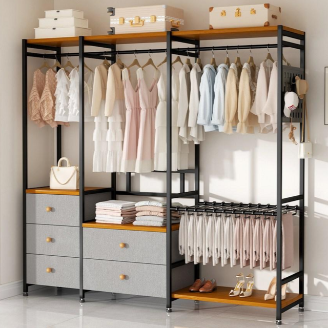이동식 시스템 행거 다용도 드레스 옷장 조립식 시스템 행거 철제 수납 선반형 자취방 패브릭 좁은 원룸
