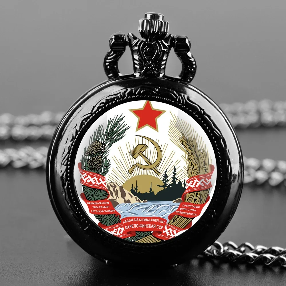 소련 공화국 로고 유리 돔 회중시계 – 쿼츠 무브먼트, 아라비아 숫자 다이얼 및 내구성 있는 체인, 시대를 초월한 선물