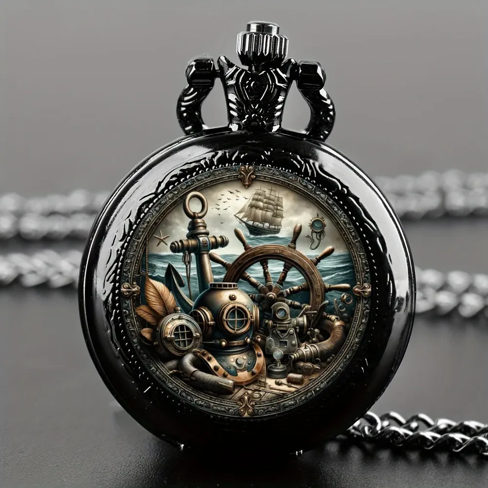 빈티지 독특한 해상 항해선 앵커 디자인 석영 포켓 시계, 체인 목걸이 펜던트 포함, 어린이 남성 남성을 위한 훌륭한 선물