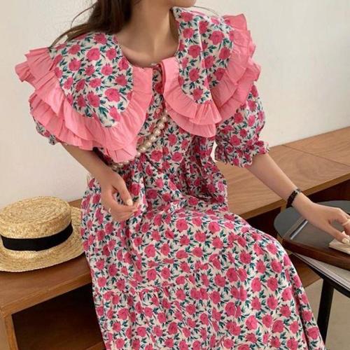 이쁘다요 크 원피스 플라워 카라 롱 WFLMN04
