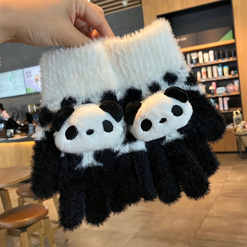 TEMU 여성을 위한 귀여운 플러시 5자 손목 장갑, 겨울에 적합, 터치 스크린 호환, 보온 및 방한 기능, 학생용 전동 자전거를 위한 만화 디자인.|자전거|전기자전거