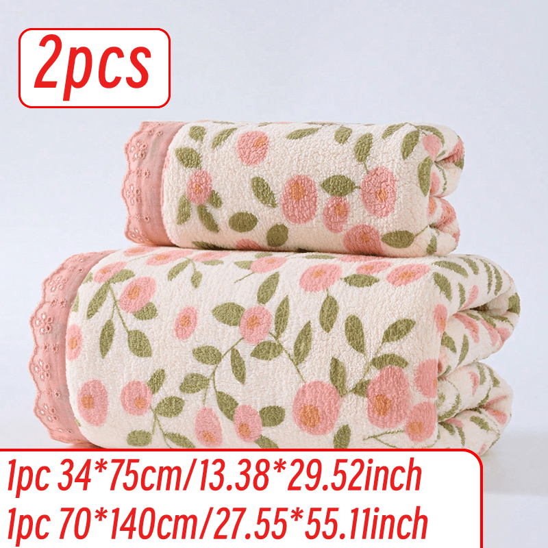 TEMU 2개/4개 세트, 타월 34x75cm/40x80cm, 목욕 타월 70x140cm/90x170cm, 로맨틱 하트 레ース 트림, 전원풍 스타일, 꽃무늬 프린트 타월/목욕 타월, 부드럽고 편안하며 흡수성이 뛰어나고 보풀이 없는 헤어 워시 앤 드라이 타월, 핑거팁 타월, 가정용, 세수 및 목욕 타월/목욕 타월 세트
