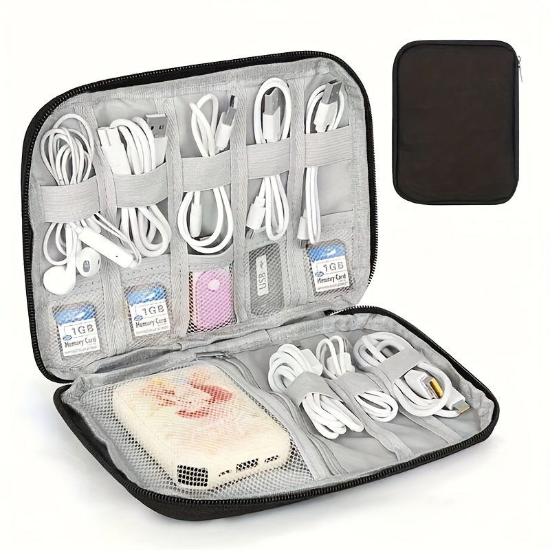 TEMU 1 여행용 케이블 정리함 멀티 포켓 전자 액세서리 케이스 | 충전기, 메모리 카드에 적합 - 휴대용 테크 장비 가방, 사무실 및 여행 필수품, AQUASAFE PE 재질