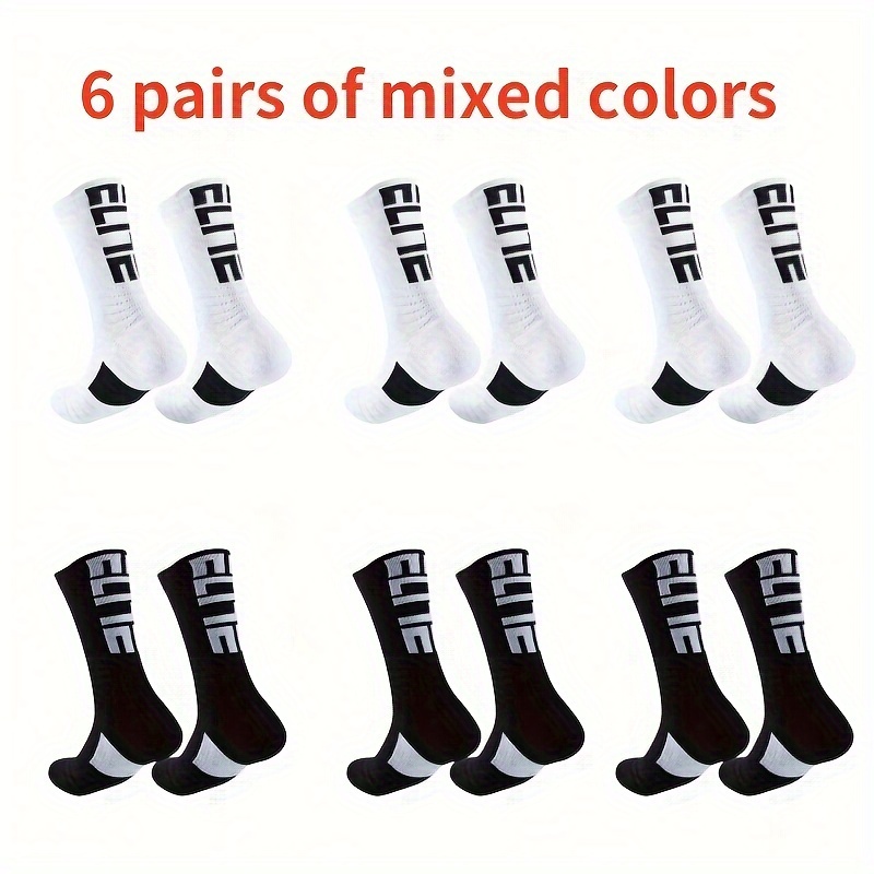 TEMU 6켤레 남녀공용 축구 양말, 실리콘 미끄럼 방지 타월 바닥, 흡습성, 단색 레터링, 땀 방지