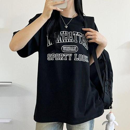 [에이치플러스몰]순 여성박스티 반팔티셔츠 블랙 여자티셔츠 여름