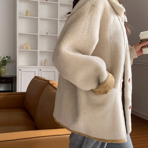 [하프클럽/]더블 울모직 하프코트 3AA8EE