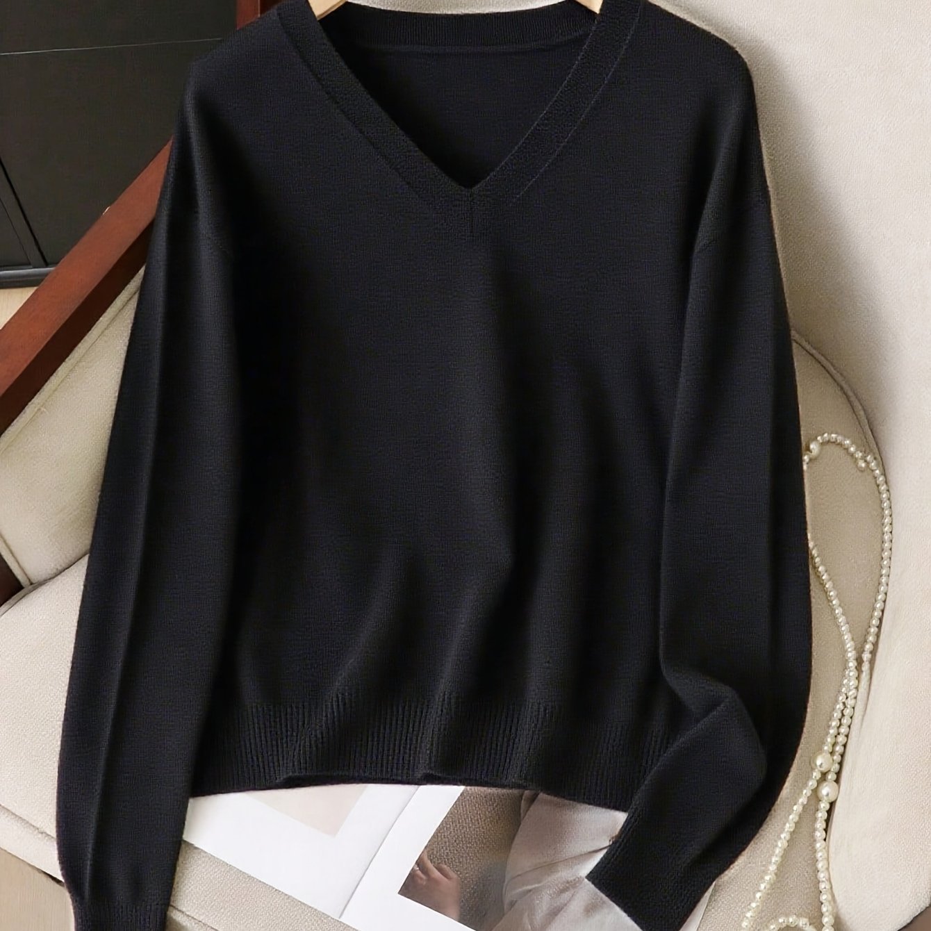 TEMU 플러스 사이즈 여성용 캐주얼 V넥 긴팔 풀오버 스웨터