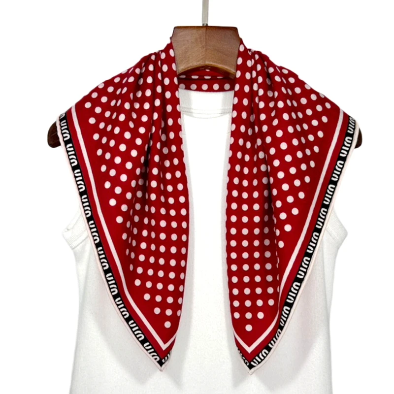 90cm 물방울 무늬 여성용 봄 여름 얇은 인조 실크 트윌 스카프, 패셔너블하고 다재다능한 터번 숄