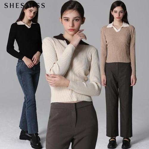[리스트][쉬즈미스(SHESMISS)] 울 블렌드 버튼 카라 니트 (택가격138000원)