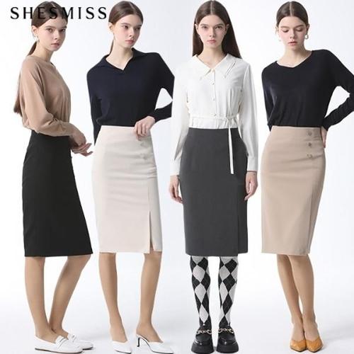 [쉬즈미스(SHESMISS)] 페이크버튼 슬린 H라인 스커트