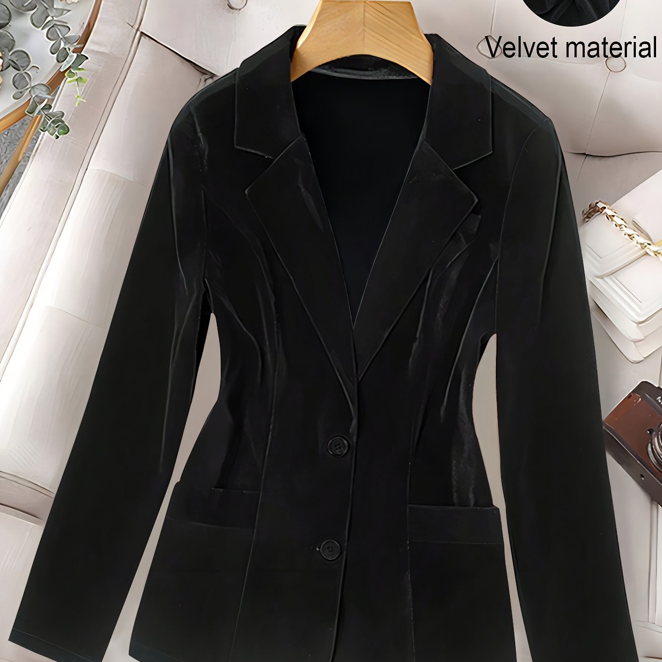 TEMU 새로운 가을/겨울 단색 벨벳 슈트 재킷, 공식 행사 및 출퇴근에 적합, 우아하고 세련된 의상