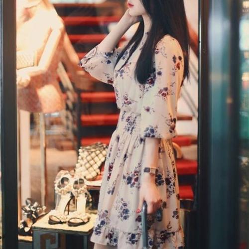 플라워 A라인 랩원피스 UC-0119 쉬폰 꽃원피스 프릴 무늬 미니 A원피스 브이넥
