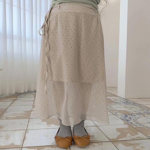 슈팅스타 / 허리 밴딩 쉬폰 플라워 A라인 롱 스커트