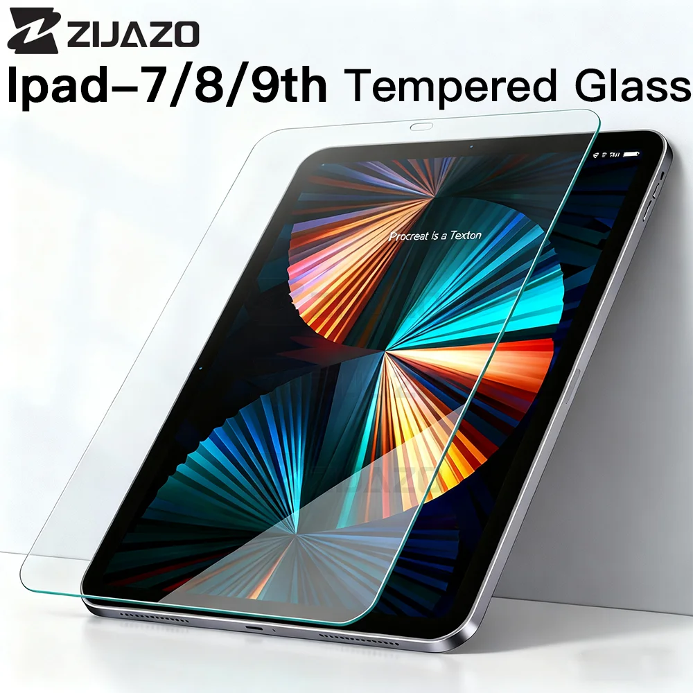 ZIJAZO 2pcs 9H 강화 유리 아이패드 7세대 8세대 9세대 10.2'용 클리어 스크린 프로텍터 아이패드 A2198용 긁힘 방지 보호 필름