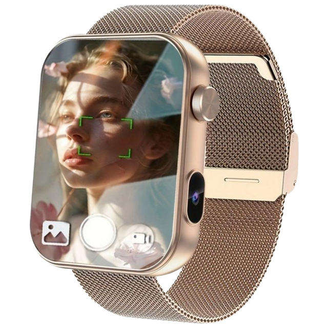 2025 스마트워치 카메라 녹음 기능, 골든 메쉬 시계 + 골든 실리콘 스트랩