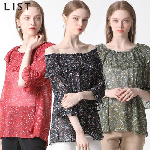 오프숄더 스모크 주름 플레어 플라워블라우스 NF-35 WFHW13V