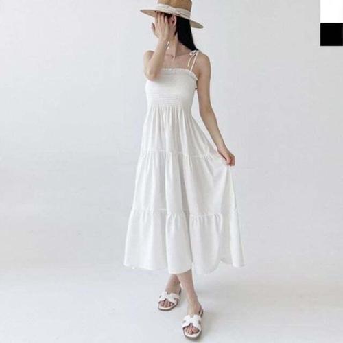 [모노무드]모노무드 무지 비치 튜브탑 끈나시 스모크밴딩 롱원피스 휴양지