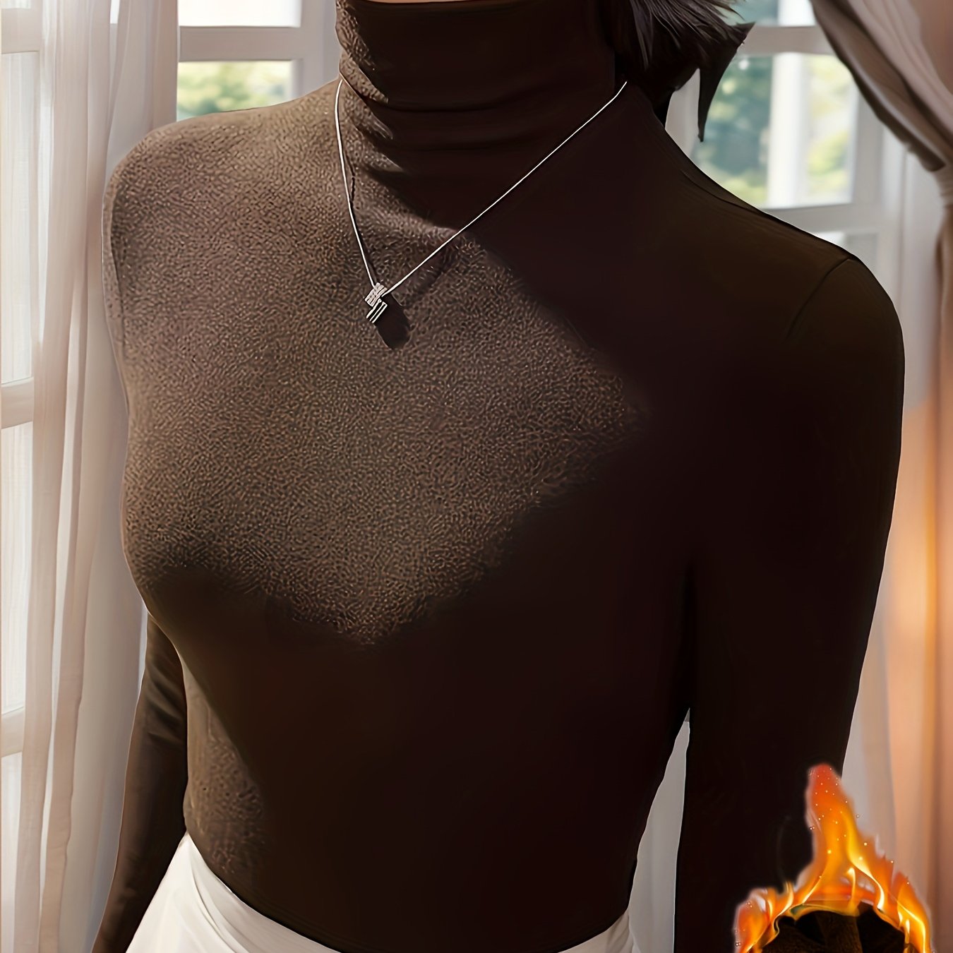 TEMU 플러스 사이즈, 여성용 플러스 사이즈 두꺼운 겨울 레이어링 아이템 - 하이넥 스웨터 블라우스 발루, 프로페셔널 & 스마트 캐주얼 웨어, 따뜻한 긴팔 셔츠, 세탁기 사용 가능 솔리드 컬러 (땀 흡수에 적합)