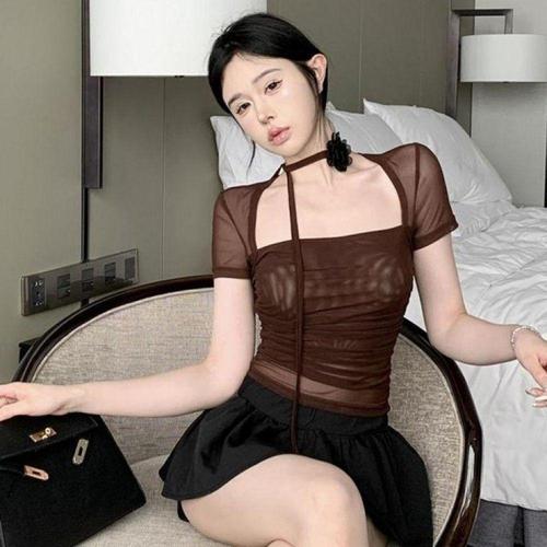 [오너클랜]인기상품 슬림 반팔 플라워 포인트 끈 스카프 [WFLLQ0D_260305]