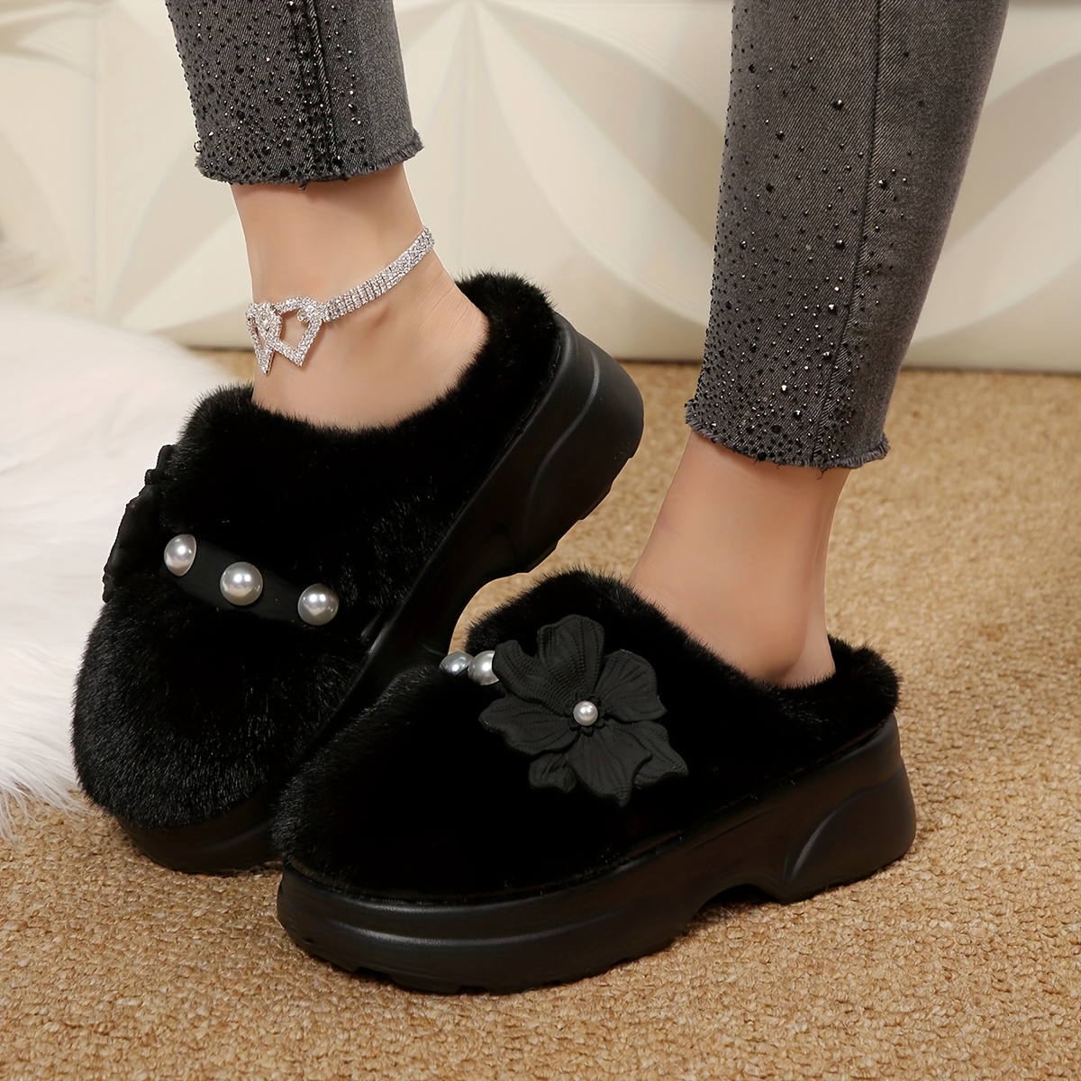 TEMU 여성용 플러시 기모 안감 겨울 신발 - 아치 & 플랫폼 힐이 있는 부드러운 슬립온 무울, 포근한 플러시 기모 & 플러시 깔창, 사계절 따뜻함, 캐주얼한 솔리드 컬러 디자인, 편안한 신발, 내구성이 뛰어난 PVC 밑창