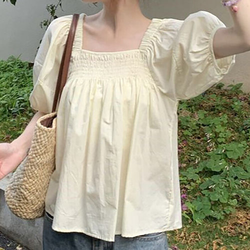 HOTBBA / 스퀘어넥 벌룬소매 스모크밴딩 반팔블라우스 NF_57