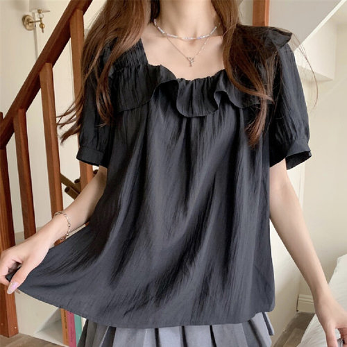 여성 티셔츠 스퀘어넥 프릴 블라우스