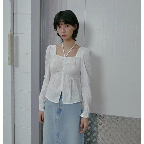 스퀘어넥 크롭 셔링 블라우스 LM-0052