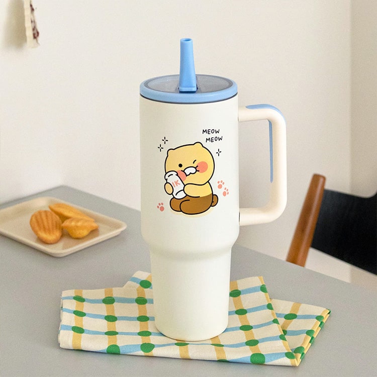 카카오프렌즈 대용량 점보 그립 스텐 텀블러 보온 보냉 빨대 손잡이 텀블러 차량용 1.18L