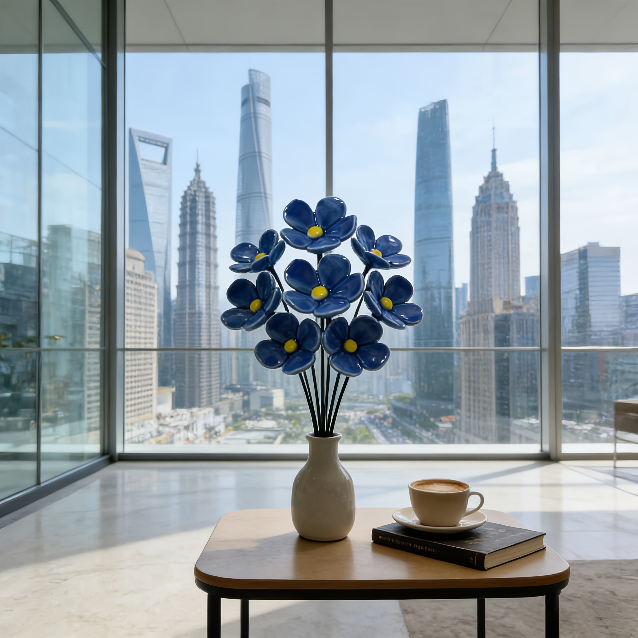 TEMU 8개 수제 세라믹 잊지마, "Blue Love" 장인 수공예, 변색 방지 영원한 홈 데코, 실내/실외 사용에 적합한 세라믹 꽃, 변색 없는 세라믹 꽃 장식, 발렌타인데이 데이트 세라믹 꽃 선물, 핸드 부케 세라믹 Ete