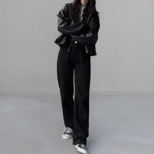 [미라클세븐]여성용 블랙 루즈핏 가죽 자켓 데일리 시크 스타일