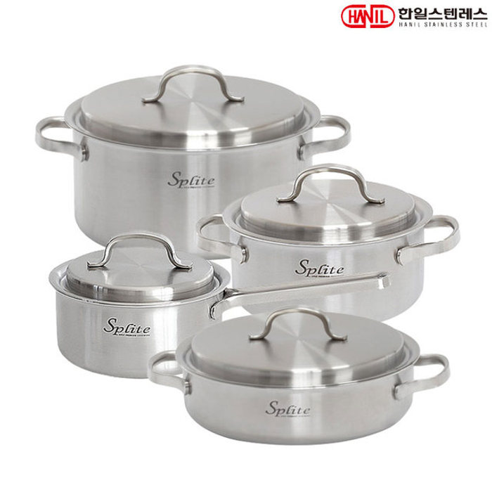 한일스텐레스 한일STS 스플릿 통5중 스텐레스 인덕션 냄비세트 4종A(편16+양18+24+전24)
