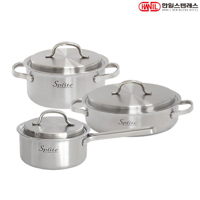 한일스텐레스 한일STS 스플릿 통5중 스텐레스 인덕션 냄비세트 3종A(편16+양18+전24)