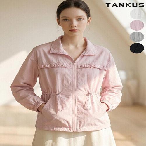 [탱커스]여성 프릴 디테일 스탠 카라 바람막이 점퍼