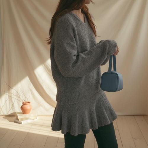 [옷자락] 여성 가을겨울 포근한 브이넥 니트스커트 투피스 세트