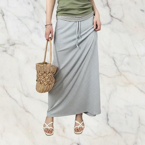 해피유통여성 스트라이프 롱스커트 하이웨이스트 캐주얼 디자인k01