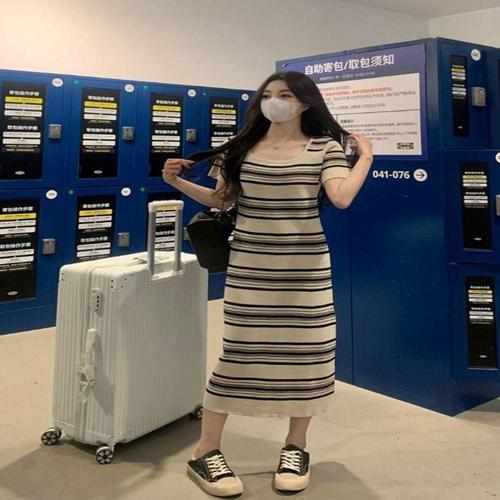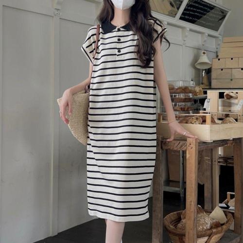 [오너클랜]인기상품 카라 포인트 스트라이프 반팔 롱원피스 여름 데일리룩 [WFK82AW_260406]