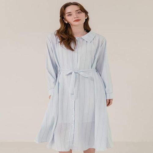[오너클랜]인기상품 여성 스트라이프 뒷밴딩 카라 롱원피스 1P 셔츠 치마 [WFK68XQ_260405]