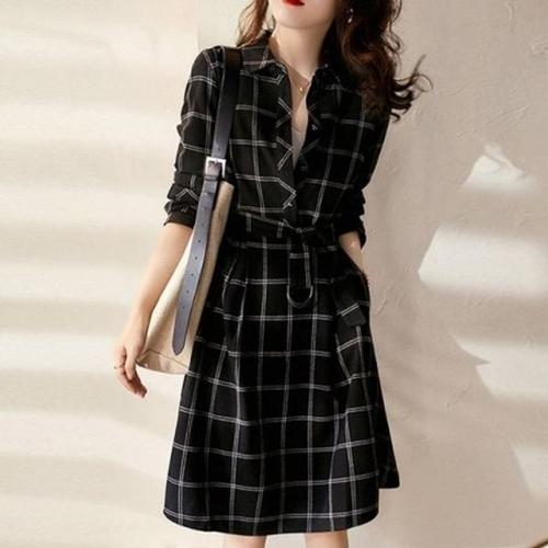 [엄지척]체크 카라 원피스 셔츠 긴팔 미디 원피스_19873363_667501