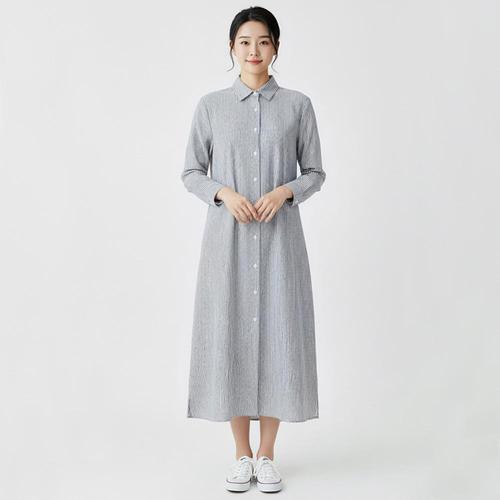 [샵앤][샵앤] 여성 카라 스트라이프 빅사이즈 셔츠 롱원피스 NTT-WDR-20804-네이비