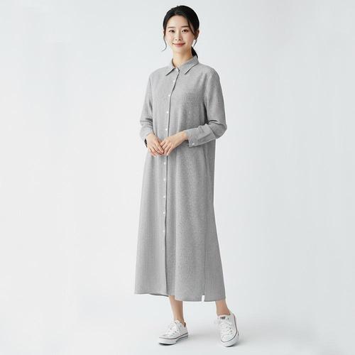 [샵앤][샵앤] 여성 카라 스트라이프 빅사이즈 셔츠 롱원피스 NTT-WDR-20804-블랙