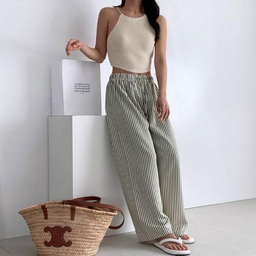 [셀러허브_여성트랜드패션]스트라이프 여름바지 시원한소재 와이드핏 밴딩팬츠