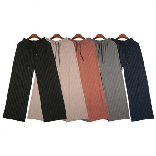 [에이치플러스몰]여성 스트라이프 와이드 밴츠 1P 밴딩 지지미 바지